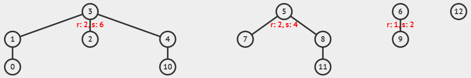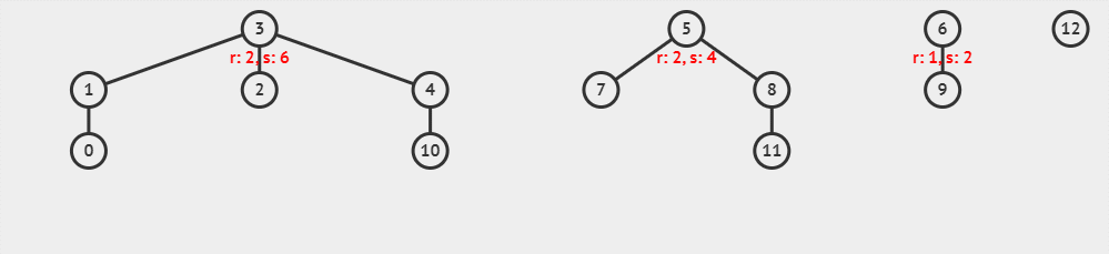 在初始化时,每个元素都是一个独立的集合,每个树的高度都为 0:
