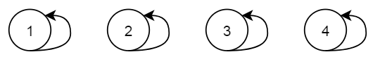 初始时,每个元素都是独立的集合,它属于它自己(表示为一棵只有根节点的树),即每个元素的值和索引相同(将根节点的父亲设为自己)。