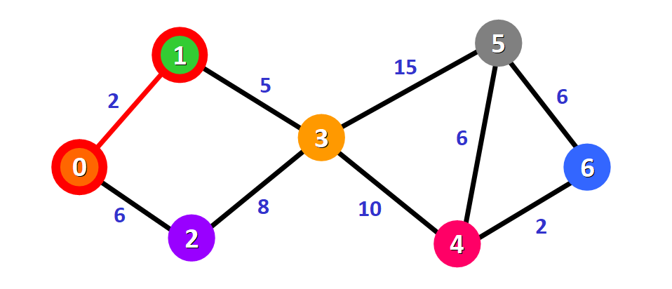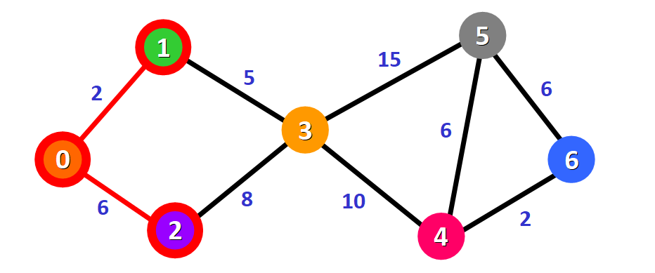 出发,可以直接将它标记为「已访问」,并在图中给它加上红色的边框: